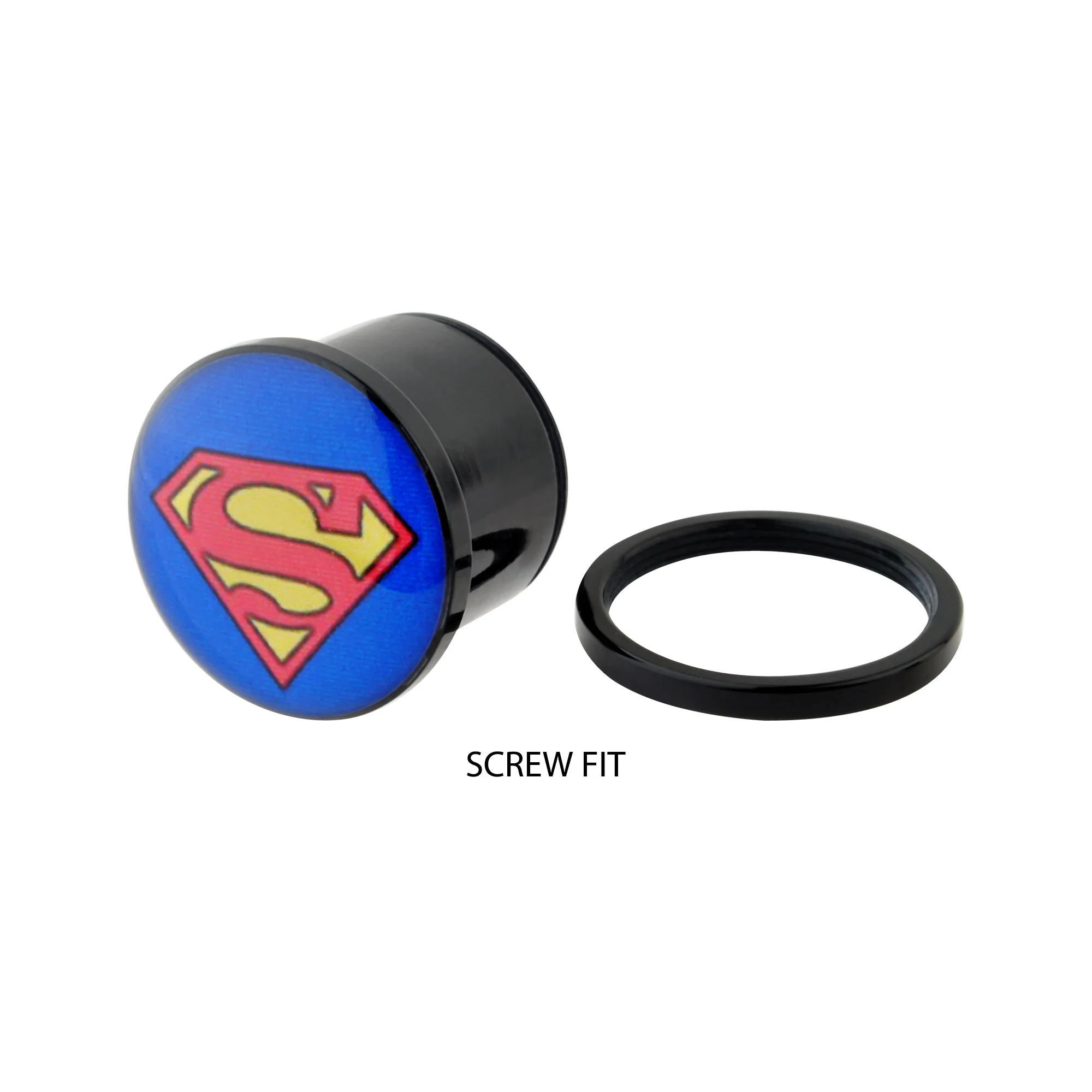 DC Comics Multi Color Superman Logo Acrylic Screw Fit Plug. Sold as pair.